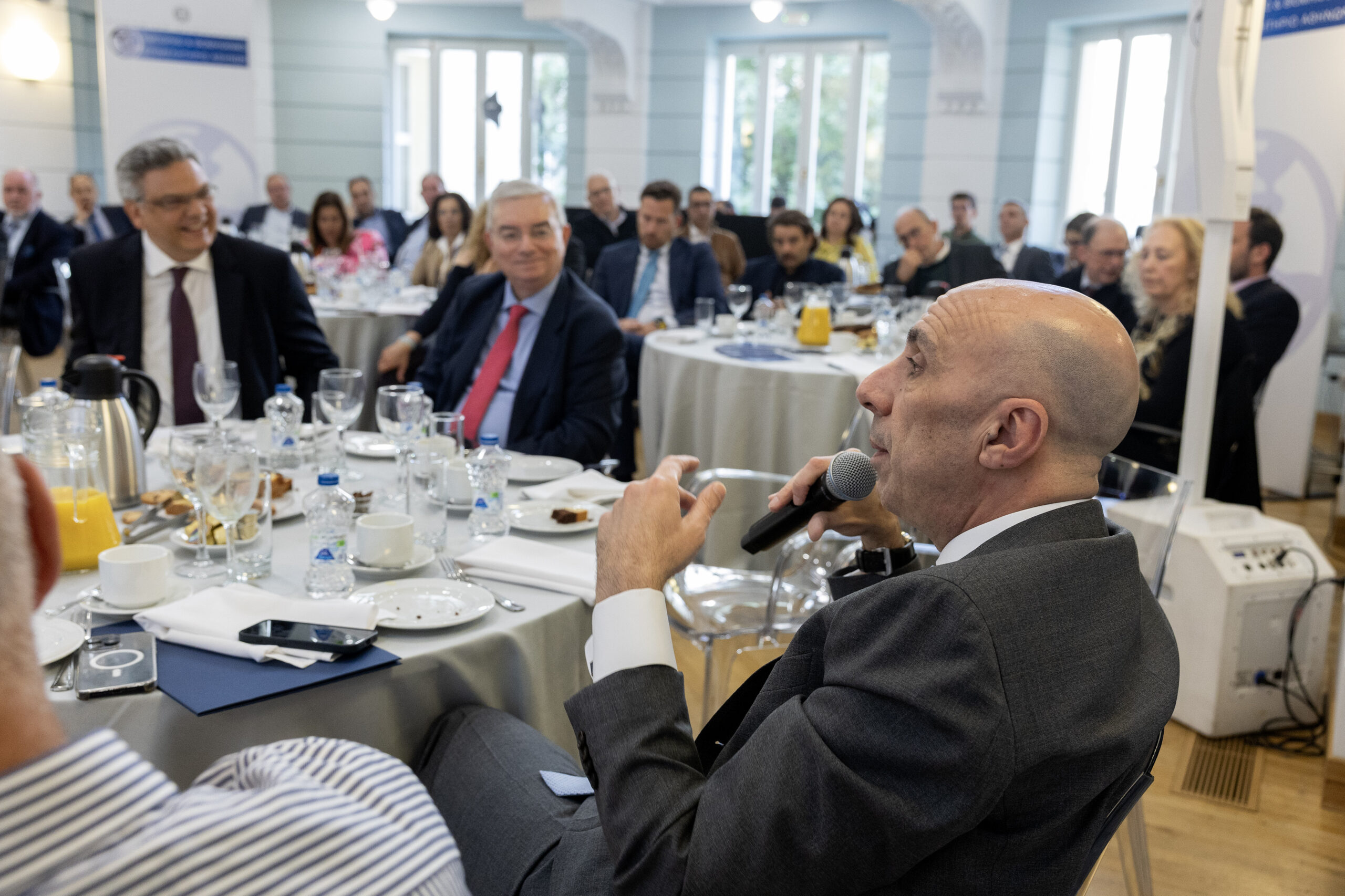 Ο Ειδικός Γραμματέας Μακροπρόθεσμου Σχεδιασμού, κ. Γιάννης Μαστρογεωργίου, εστίασε στις μεγατάσεις και τις εκθετικές τεχνολογικές εξελίξεις που διαμορφώνουν το μέλλον, επισημαίνοντας τη στρατηγική σημασία της προοπτικής διερεύνησης για την ανθεκτικότητα των επιχειρήσεων και τονίζοντας ότι η ανάπτυξη ικανοτήτων πρόβλεψης, προετοιμασίας και προσαρμογής αποτελεί στρατηγική επιταγή για τις επιχειρήσεις, προκειμένου να ανταποκριθούν στις μελλοντικές προκλήσεις.