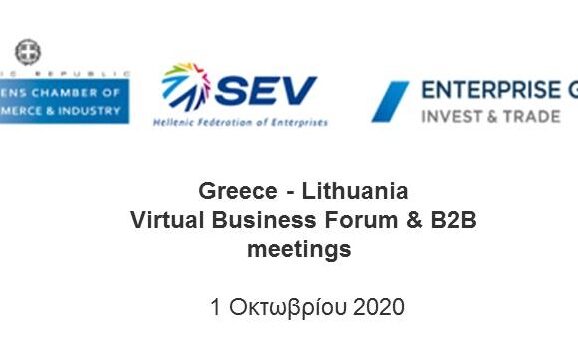 Virtual Business Forum & B2B meetings Ελλάδας – Λιθουανίας θα πραγματοποιήσουν την Πέμπτη 1 Οκτωβρίου 2020 και ώρα 10:00 το ΕΒΕΑ, o ΣΕΒ και η…