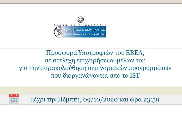 Υποτροφίες σεμιναριακών προγραμμάτων προσφέρει σε στελέχη επιχειρήσεων-μελών του το ΕΒΕΑ. Οι Υποτροφίες αφορούν στα παρακάτω σεμιναριακά προγράμματα: 1. Επιμόρφωση 12…
